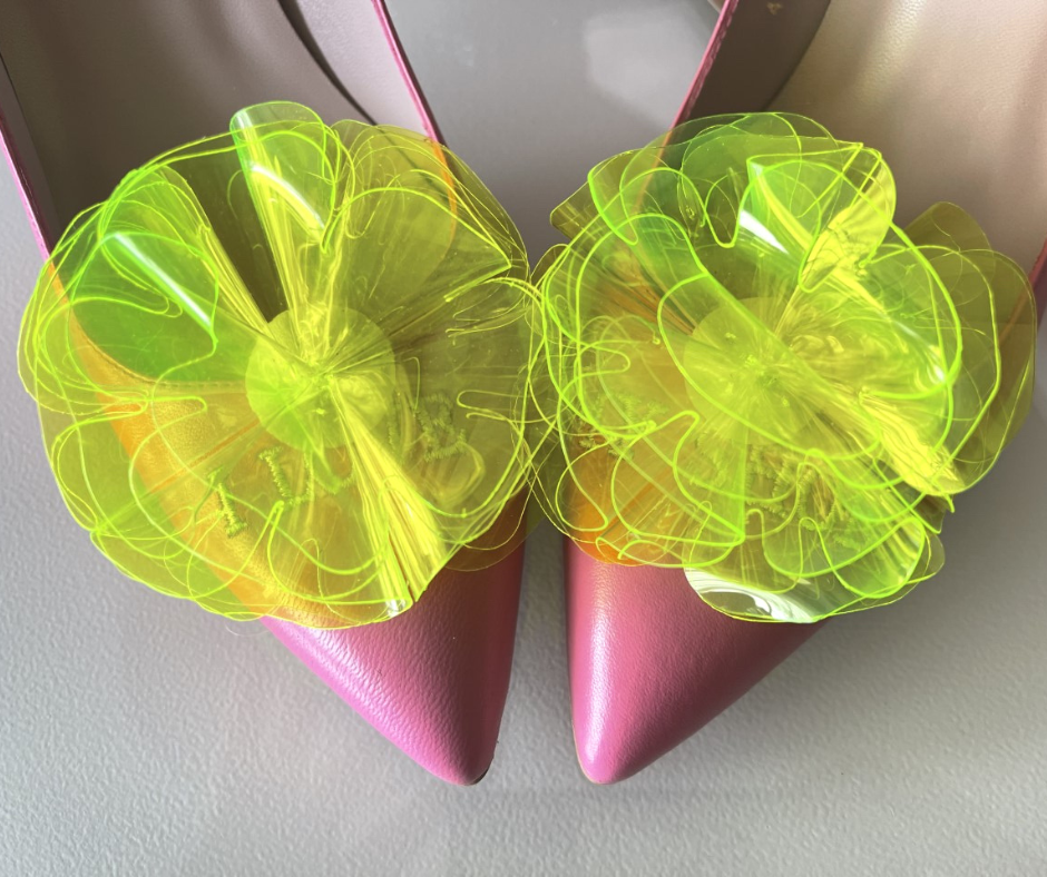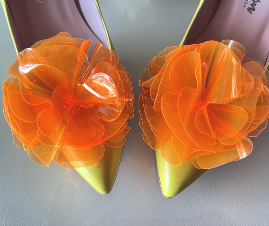 Broche de quita y pón para zapatos en forma de flor de vinilo en colores fluor super originales. Un original complemento que puedes utilizar para decorar tus zapatos y darle un toque de personalidad. ¡No dejan marca ni se caen!