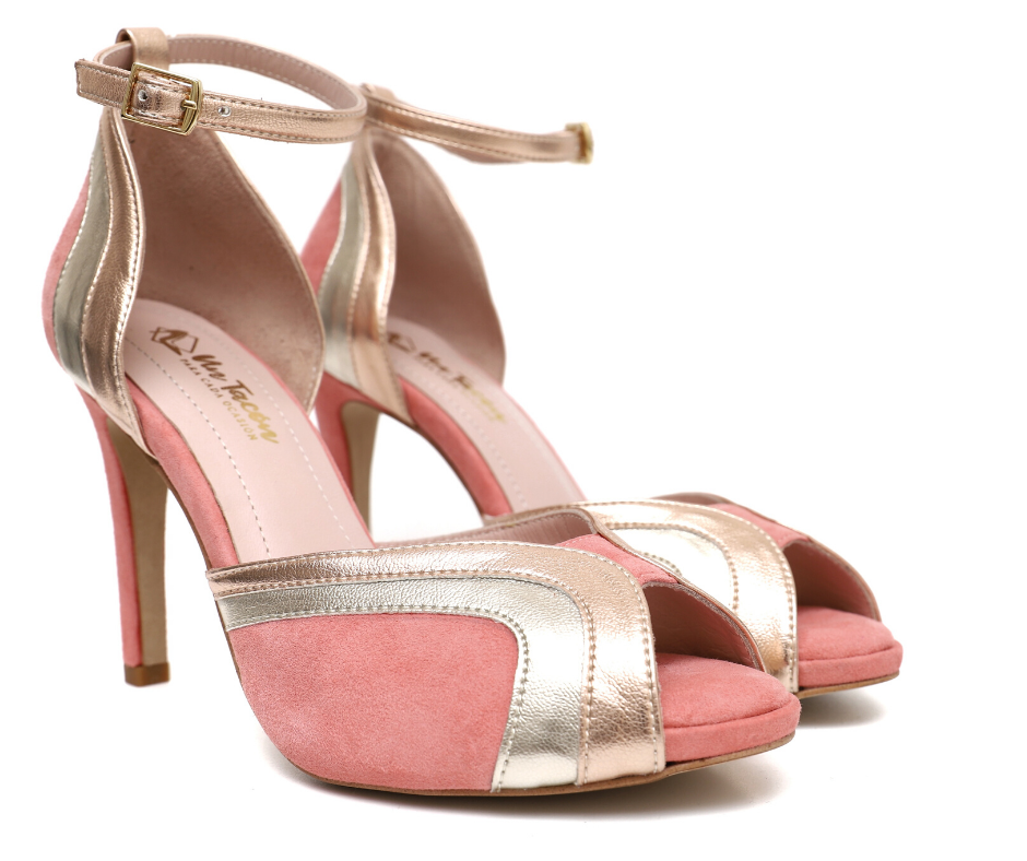 Sandalia de ante y piel, combinada en tonos rosa salmón, dorado y oro rosa metalizado. Un diseño precioso, elgante y con mucho estilo para lucir en tus eventos más importantes esta temporada. Tacón de 9cm y plataforma interior de 1,5cm. Lleva plantilla de gel confort y pulsera al tobillo para mejorar la estabiliada. ¡Un diseño divino que no puedes dejar escapar!