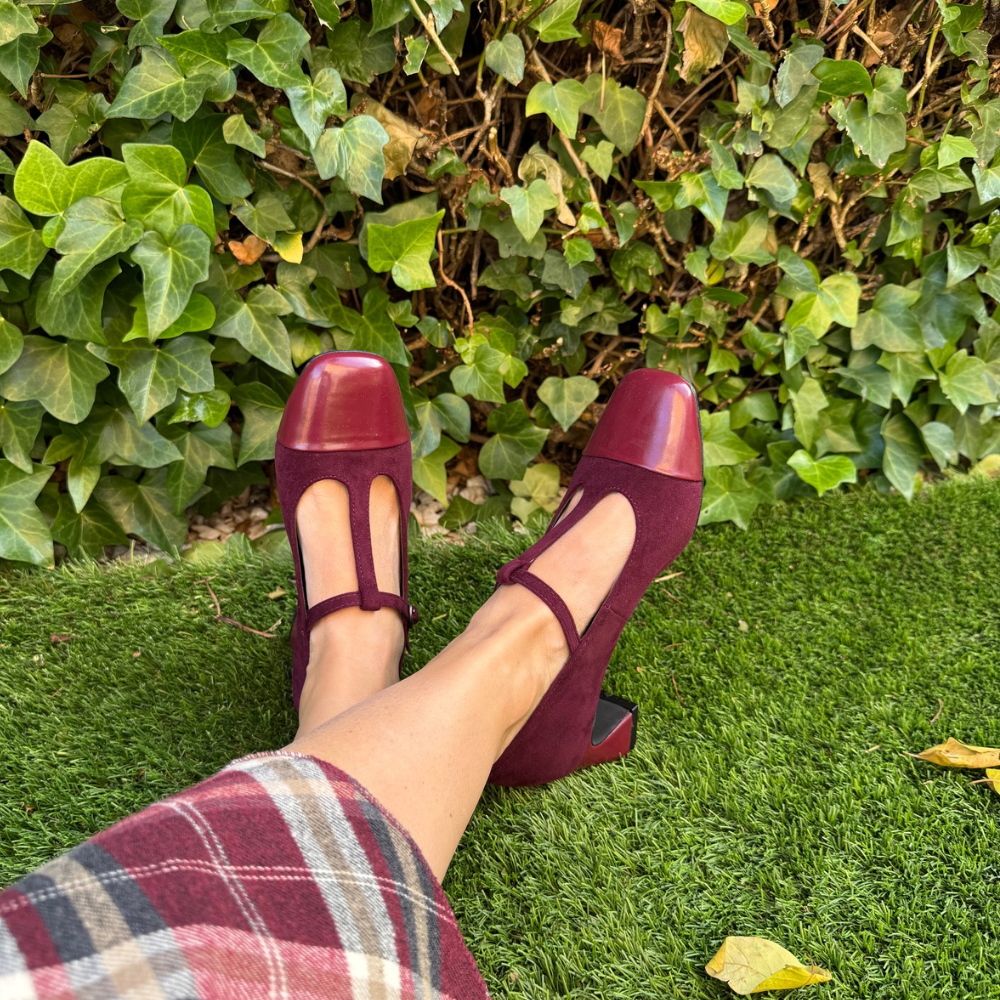 Comprar online Salón Mary Jane burdeos barato. Comprar en nuestra tienda online de Zapato tacón medio el modelo Salón Mary Jane burdeos, al mejor precio.