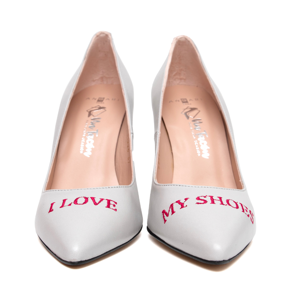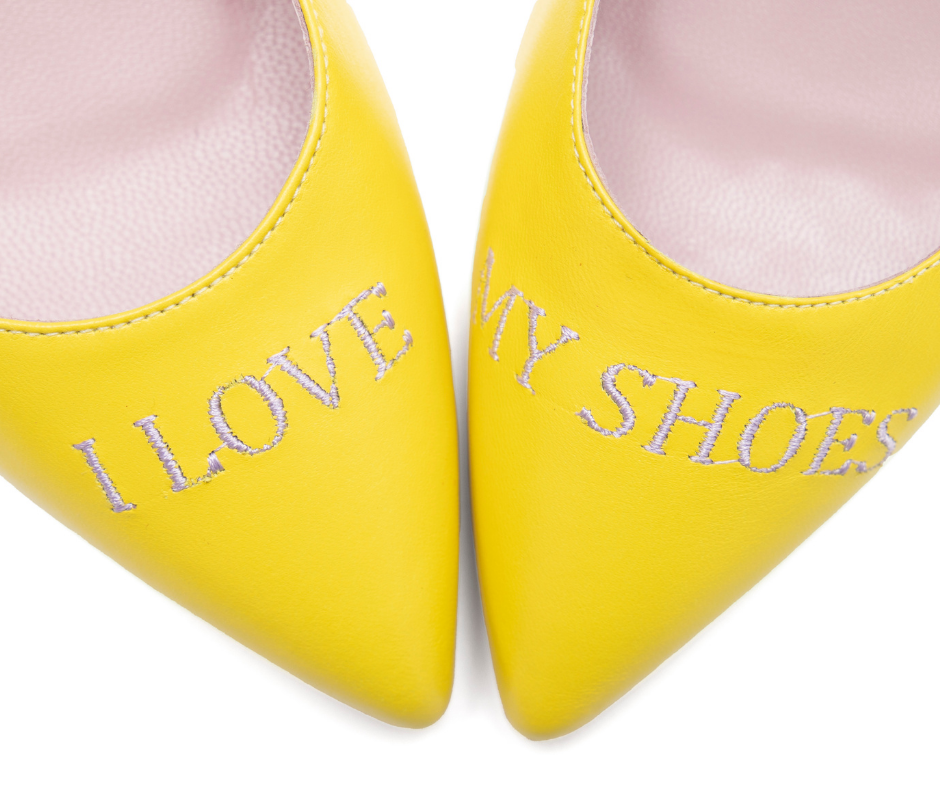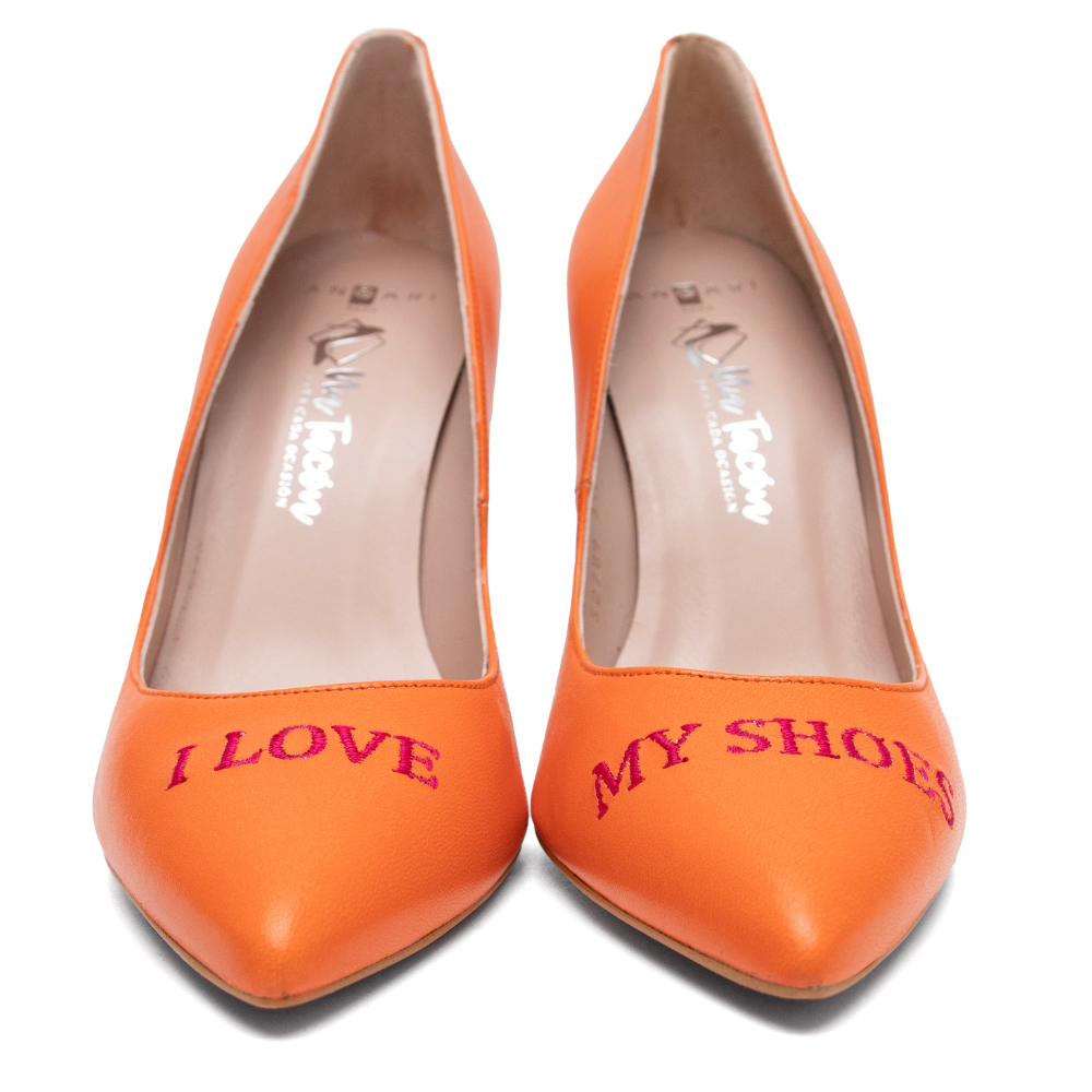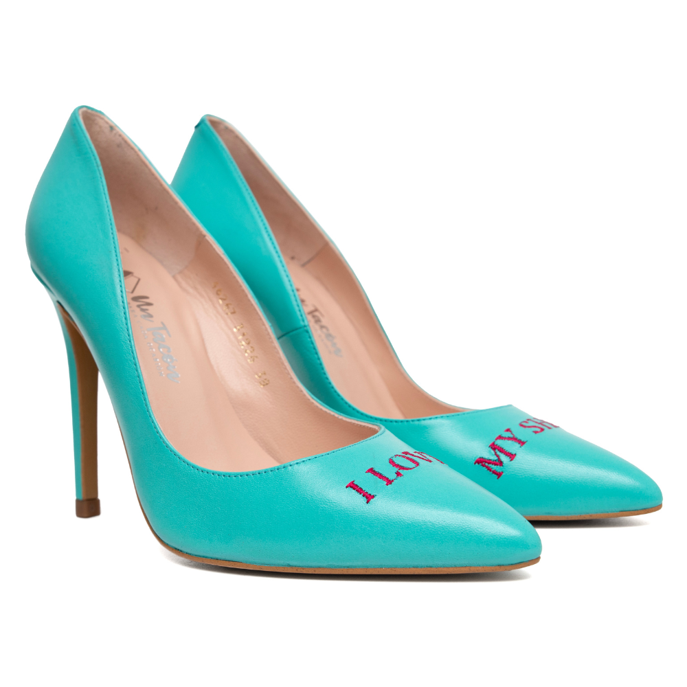 Stiletto de piel con mensaje bordado en hilo que pone: "I Love My Shoes". Un diseño de EDICIÓN LIMITADA fabricado para nuestra tienda. El zapato perfecto para lucir con tus looks de día o de noche. Tacón de 10cm y plantilla de gel especial confort. ¡No te quedes sin el TOP VENTAS de cada temporada! Combínalo con la cartera a juego también disponible en la web: "Cartera I love my shoes".